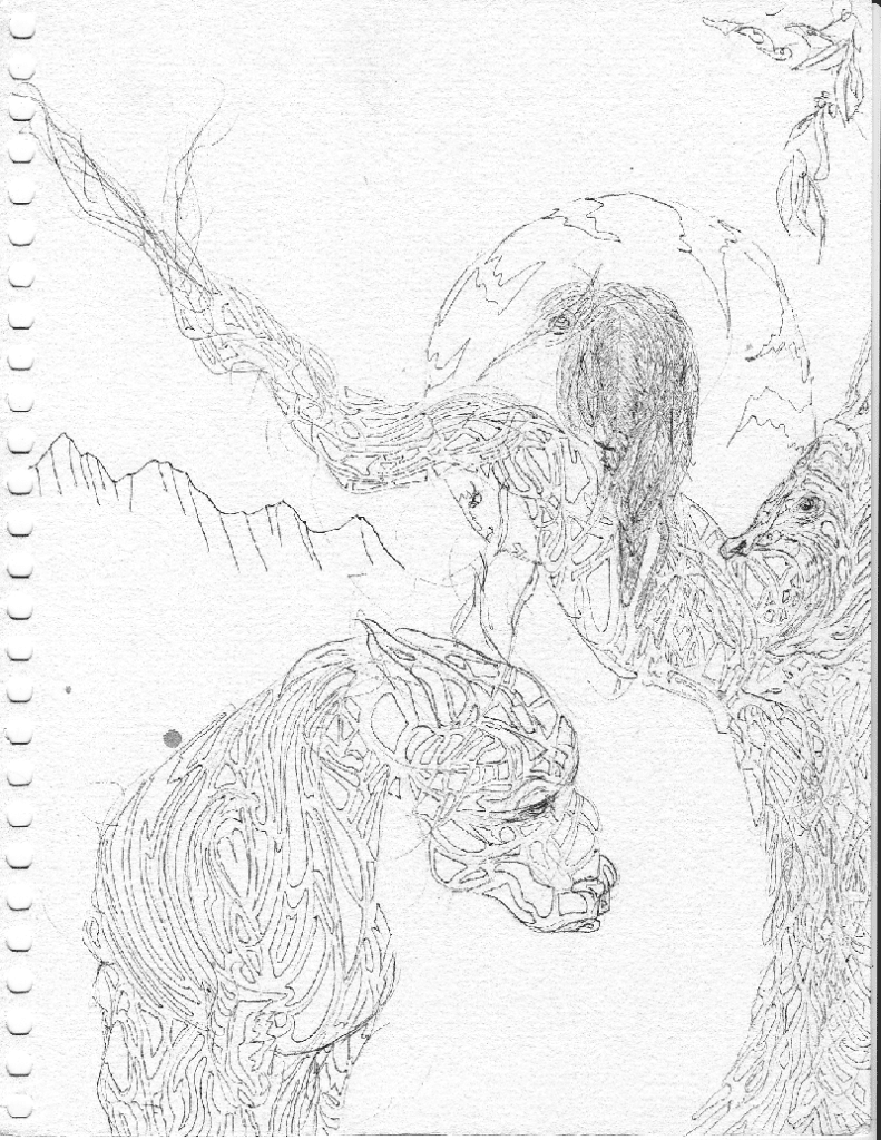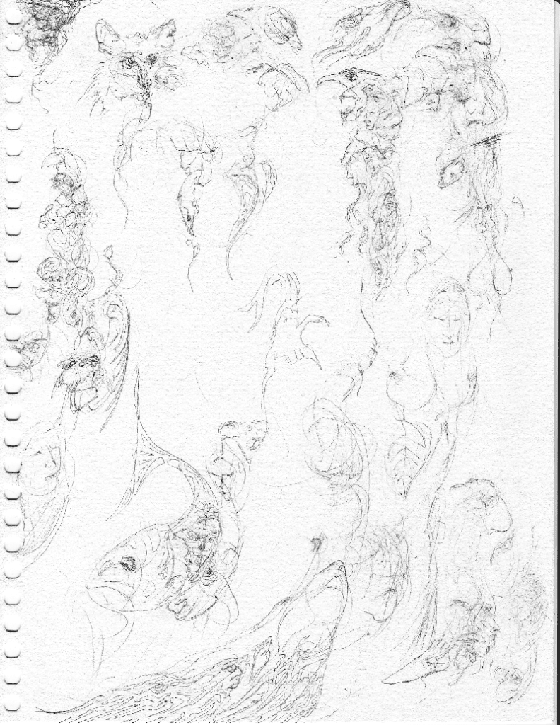 An abstract drawing forming various animal and plant shapes