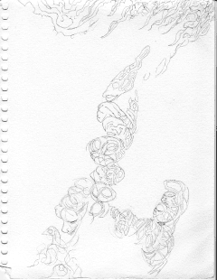 An abstract drawing of a figure reaching upward